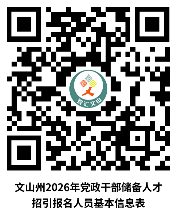 1.务必扫描填写《文山州2026年党政干部储备人才招引报名人员基本信息表》,初审时基本信息表所填个人信息、岗位情况等需与报名推荐表附件2一致。(请扫描二维码填写信息)