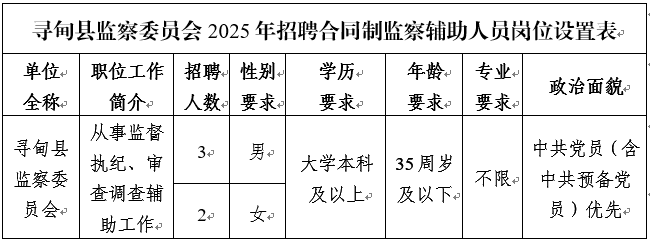 寻甸县监察委员会2025年招聘合同制监察辅助人员公告