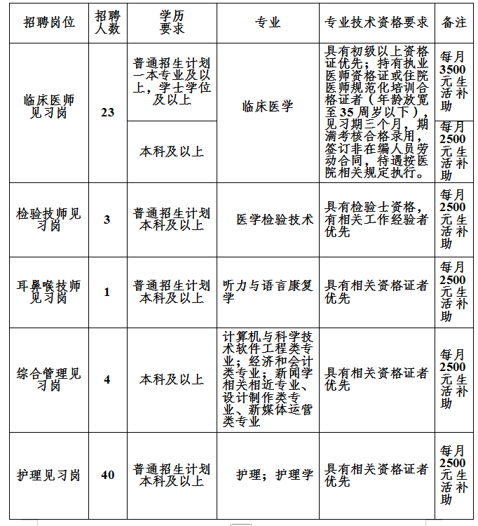 (二)见习期间给予相应生活补助费,临床医师见习岗(一本)每人每月不低于3500元;临床医师见习岗(本科)、医技和管理类见习岗、护理见习岗每人每月不低于2500元。